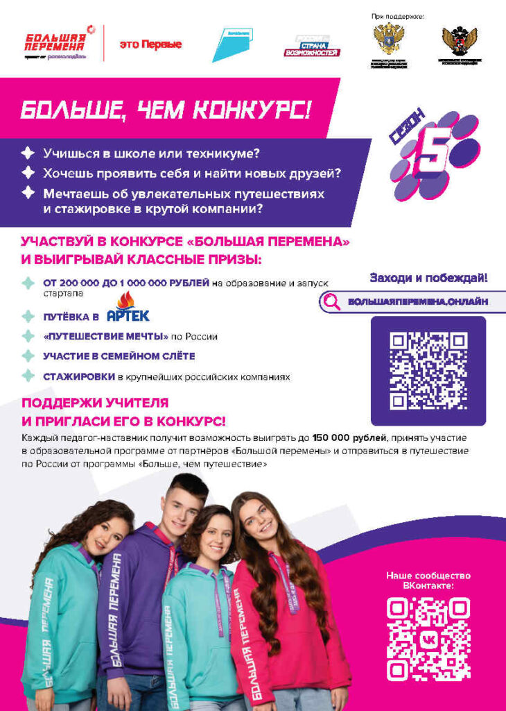 Стартовал пятый сезон Всероссийского конкурса «Большая перемена»