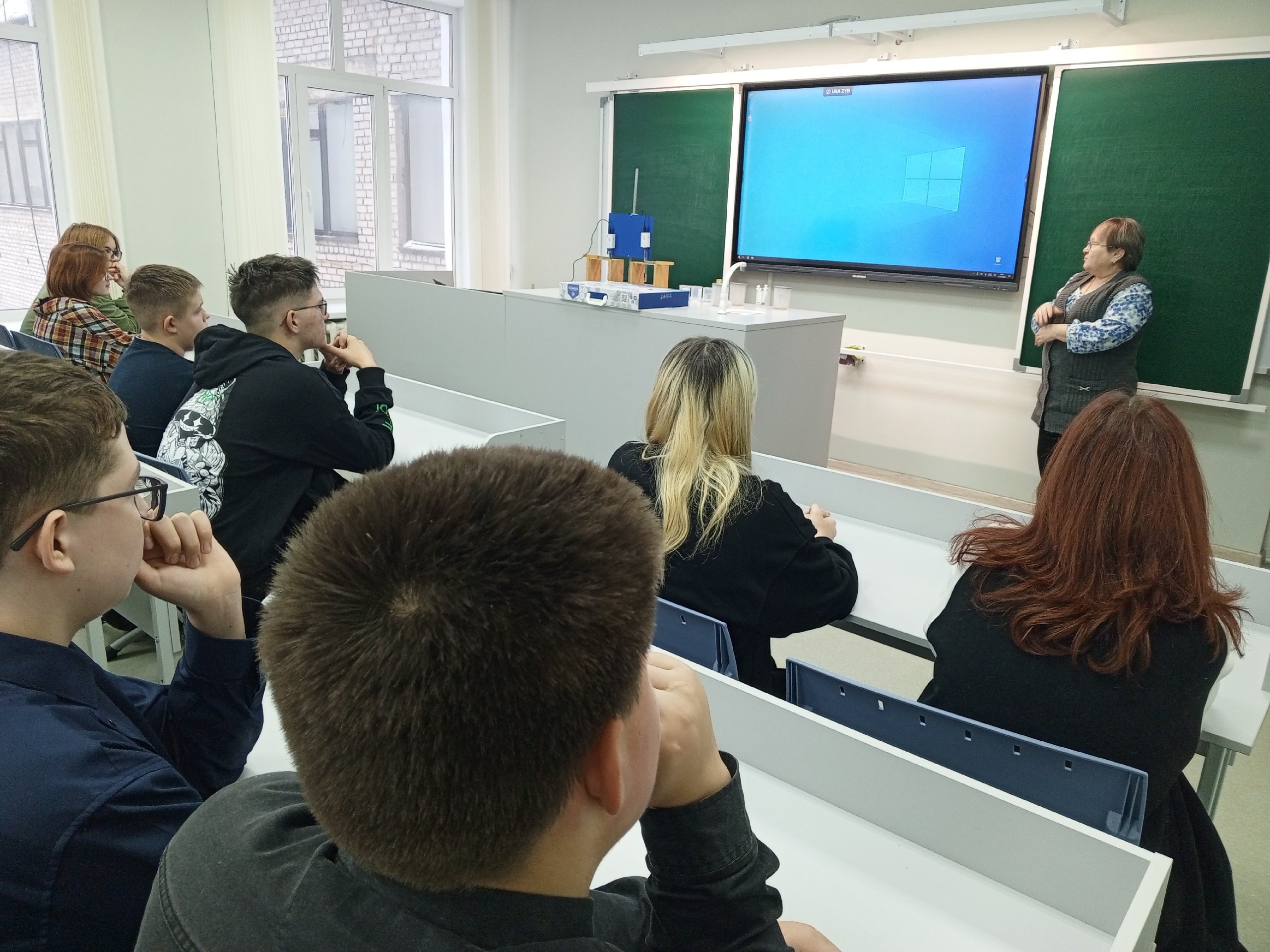 Затем ребята переместились в следующий кабинет Уральской инженерной школы, где для них была проведена ознакомительная экскурсия с приборами для проведения опытов и экспериментов по физике, при помощи которых, ребятам удалось измерить теплоемкость различных веществ.