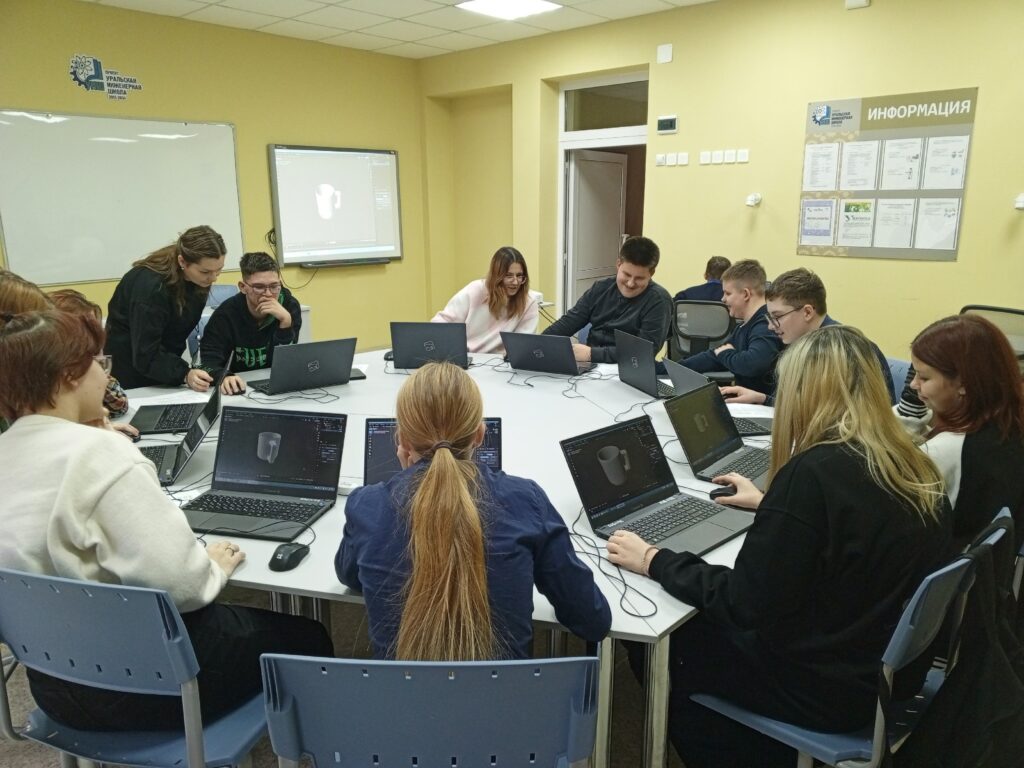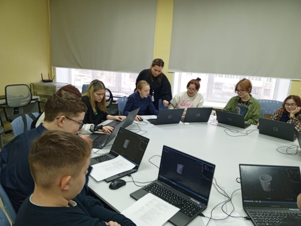 Ребята, под руководством Полины Александровны Мухиной, педагога дополнительного образования объединения «3D-моделирование», обучались создавать трехмерное изображение модели кружки для будущей печати на 3D-принтере.