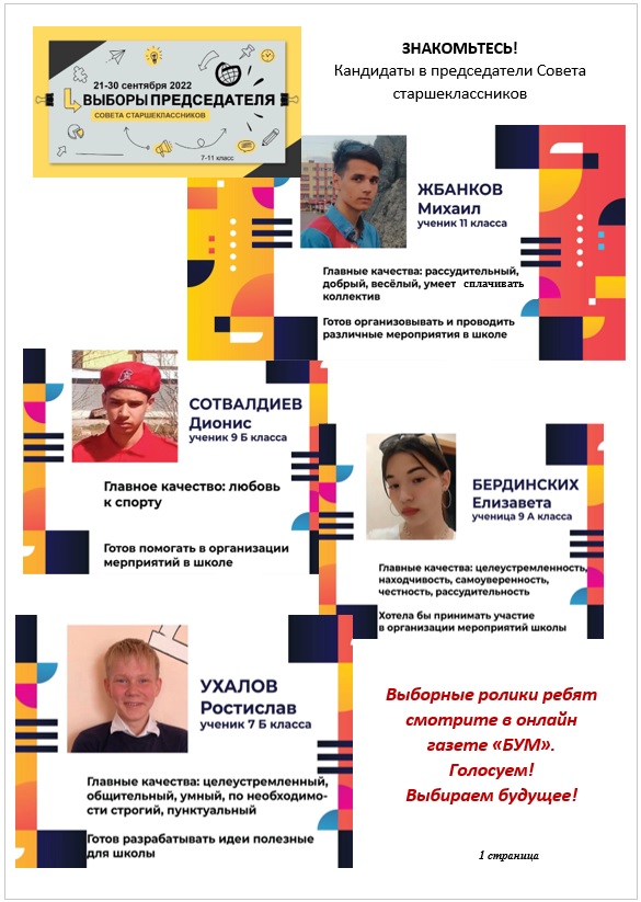 Знакомьтесь! Кандидаты в председатели Совета старшеклассников