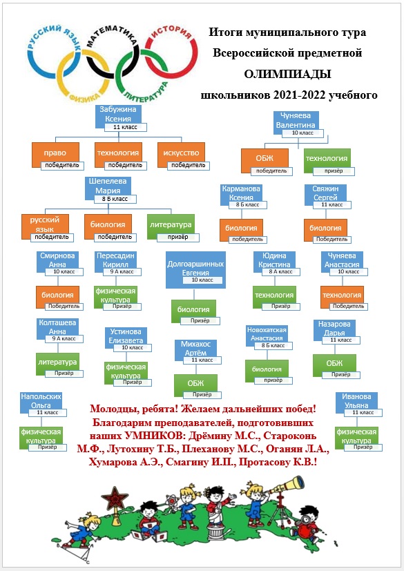 Победители и призеры муниципального этапа Всероссийской олимпиады школьников